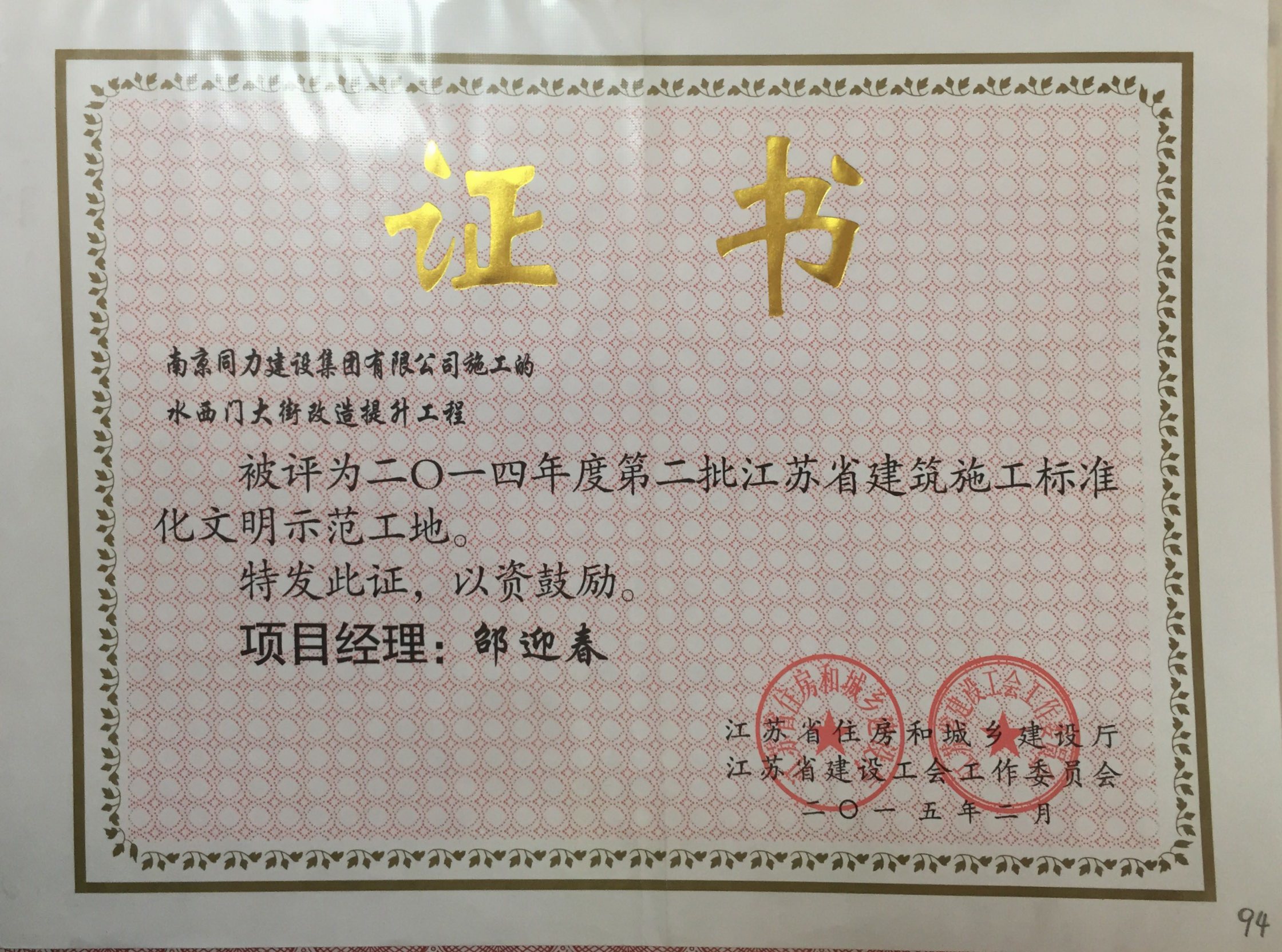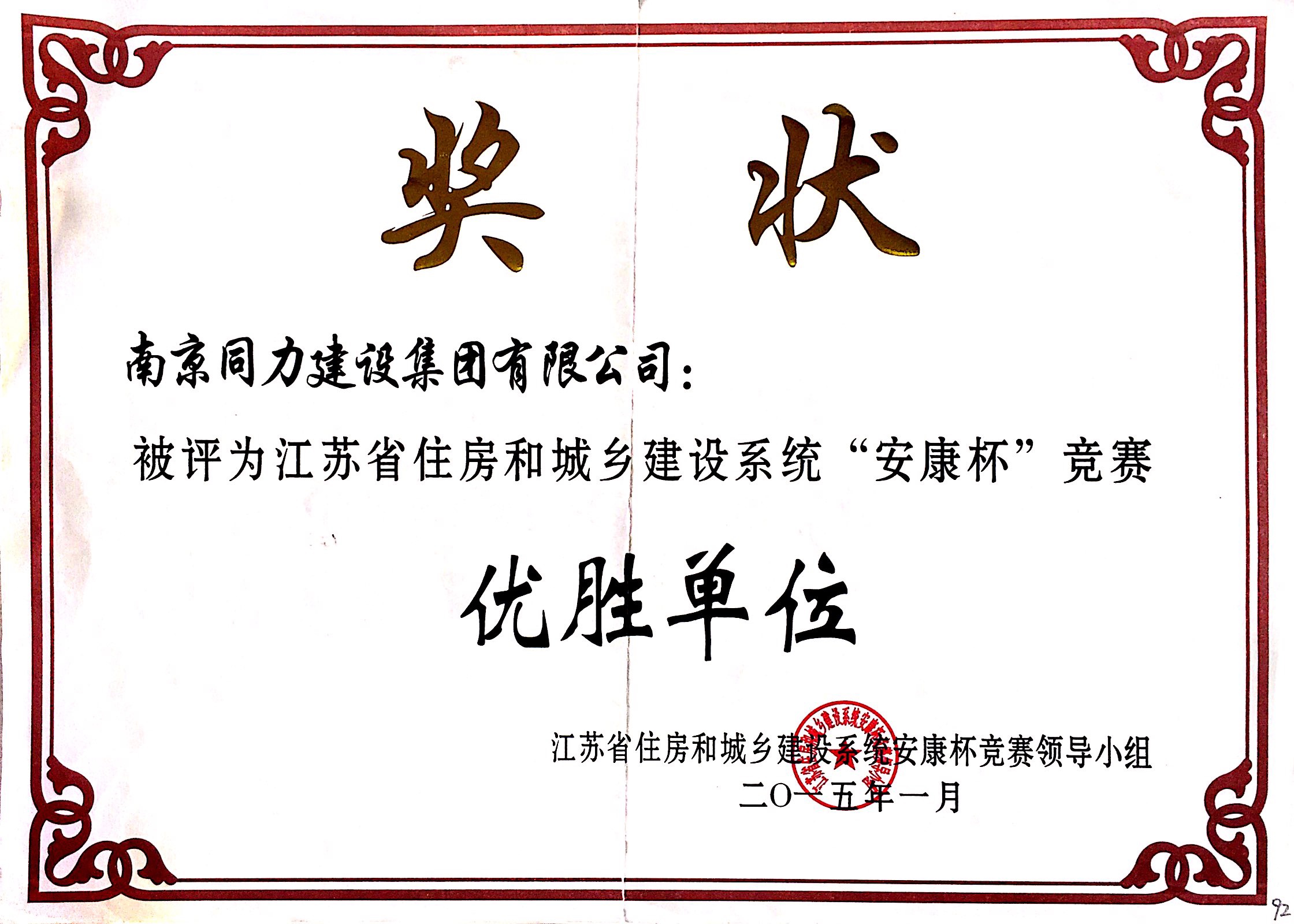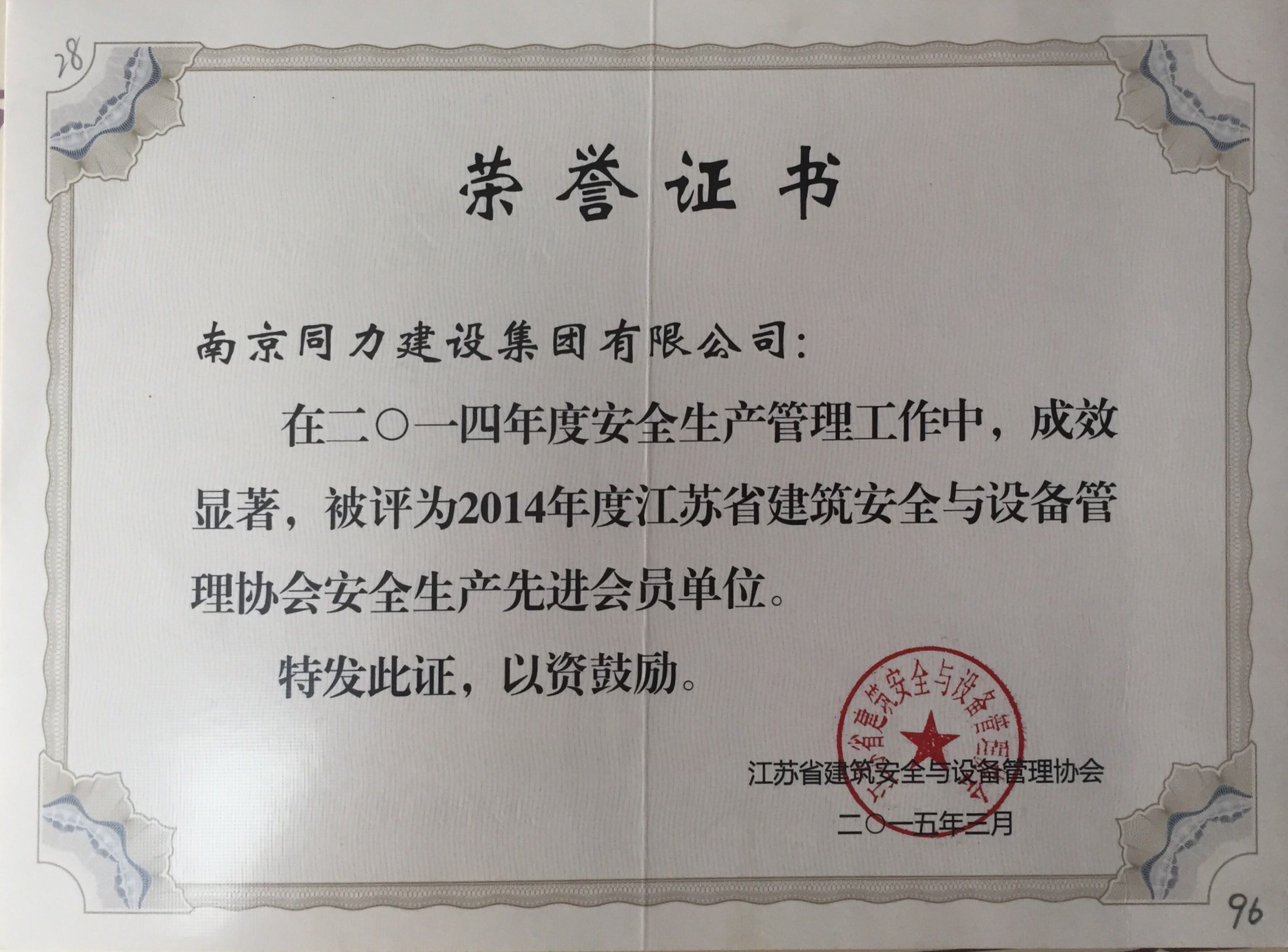 公司荣获2014年度江苏省建筑安全与设备...