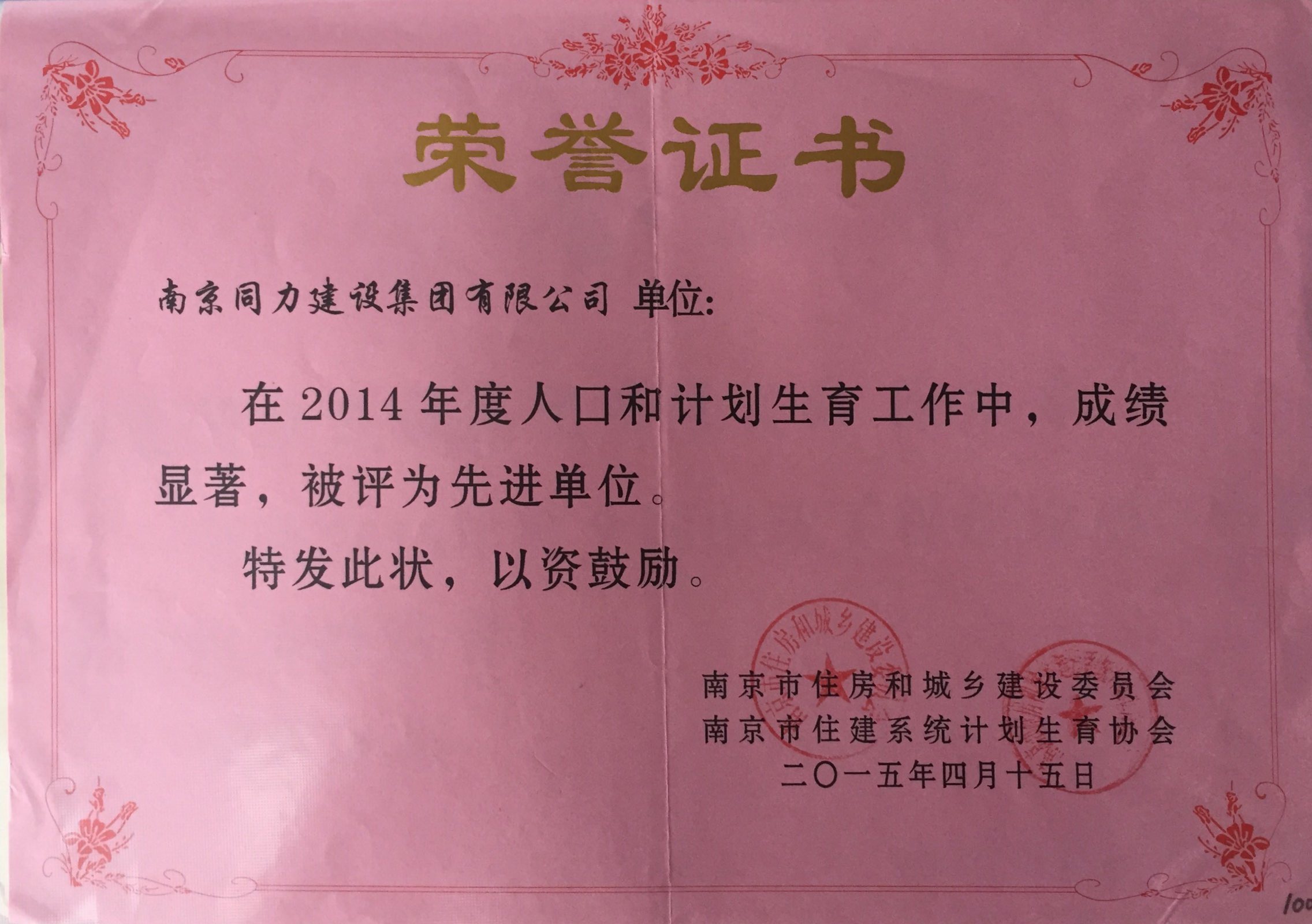 公司在2014年度人口和计划生育工作中,...