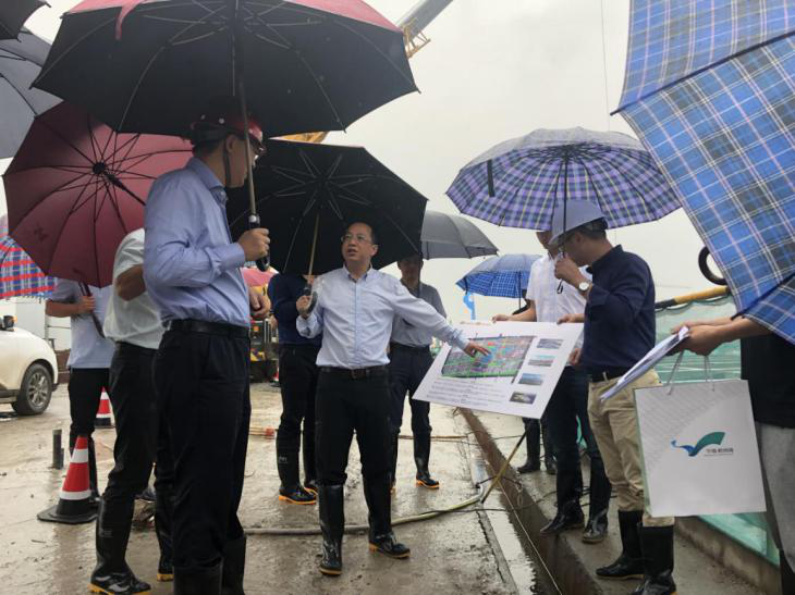 2019年5月27日上午,宁波杭州湾新区管委会主任、党工委副书记杨勇在区人大及政府相关部门负责人、雷火竞技网页版建设副总经理朱同付等人的陪同下,对雷火竞技网页版建设承建的宁波杭州湾新区中心湖隧道施工现场进行检查调研。