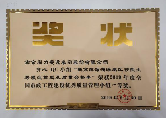 本次发布会上,雷火竞技网页版建设参赛的两项QC成果均来自项目施工一线,成果质量水平较高,经过激烈角逐,雷火竞技网页版人QC小组的《降低风化岩层三重管高压旋喷桩水泥损耗率》和齐心QC小组的《提高滨海漫滩地区砂性土层灌注桩成孔一次验收合格率》均荣获一等奖,雷火竞技网页版建设凭借多年来在QC小组活动中的突出成绩和表现,再次荣获“2019年度全国市政工程建设QC小组活动优秀企业”称号,徐庆平获得“2019年度全国市政工程建设QC小组活动优秀推进者”,此次再获大奖是对雷火竞技网页版建设多年来QC小组活动成绩的一种肯定,更激励雷火竞技网页版人继续努力开展QC小组活动。