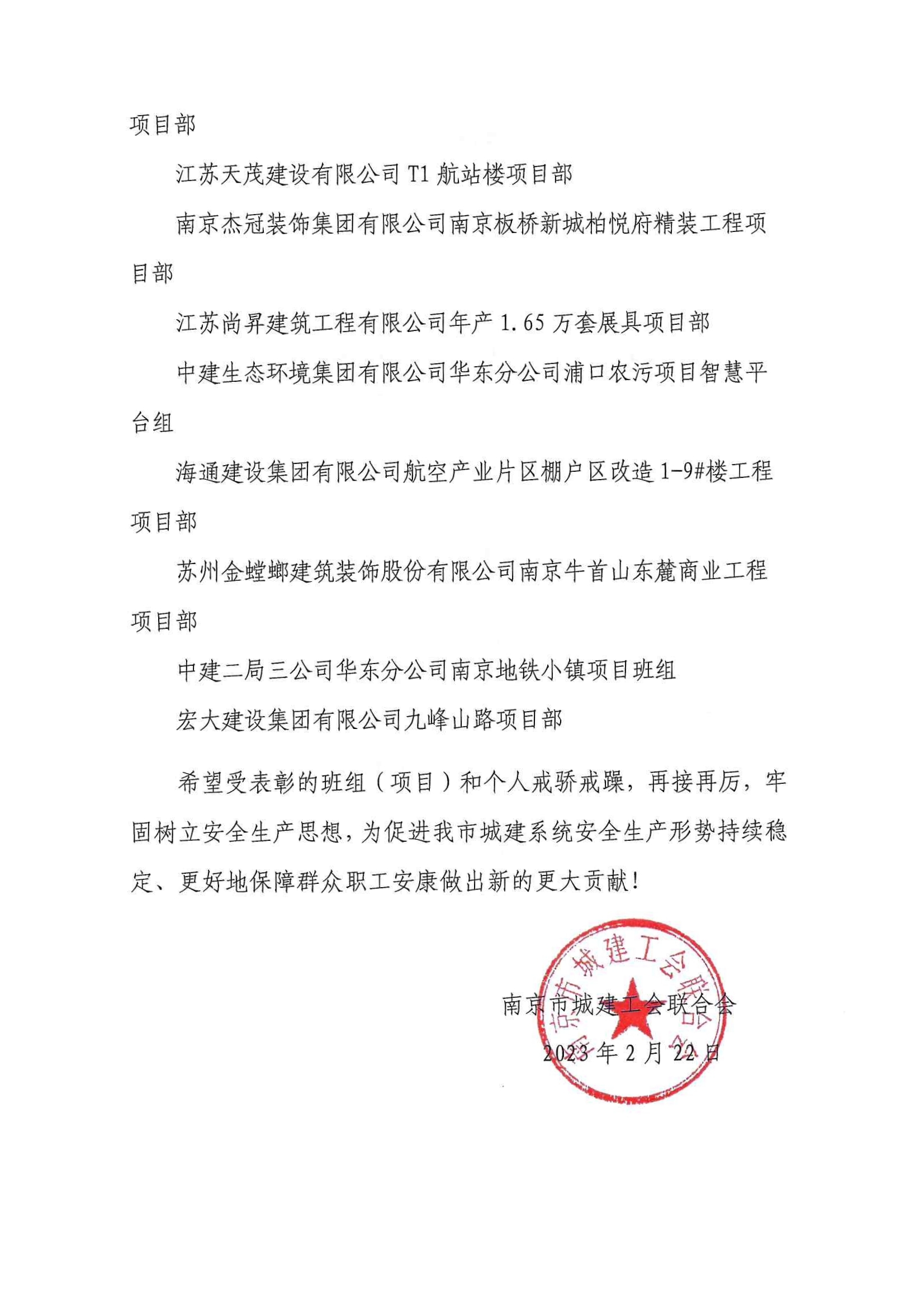 近日,南京市城建工会联合会下发宁建工发[2023]第03号文《关于授予2022年度南京市城建系统“工人先锋号”的通知》,其中雷火竞技网页版紫东青龙污水管建设工程项目部获2022年度南京市城建系统“工人先锋号”称号,继该项目被评选为南京市智慧化工地、南京市差别化工地、南京市水务2021年市级文明工地后获得又一殊荣,提升了企业影响力。