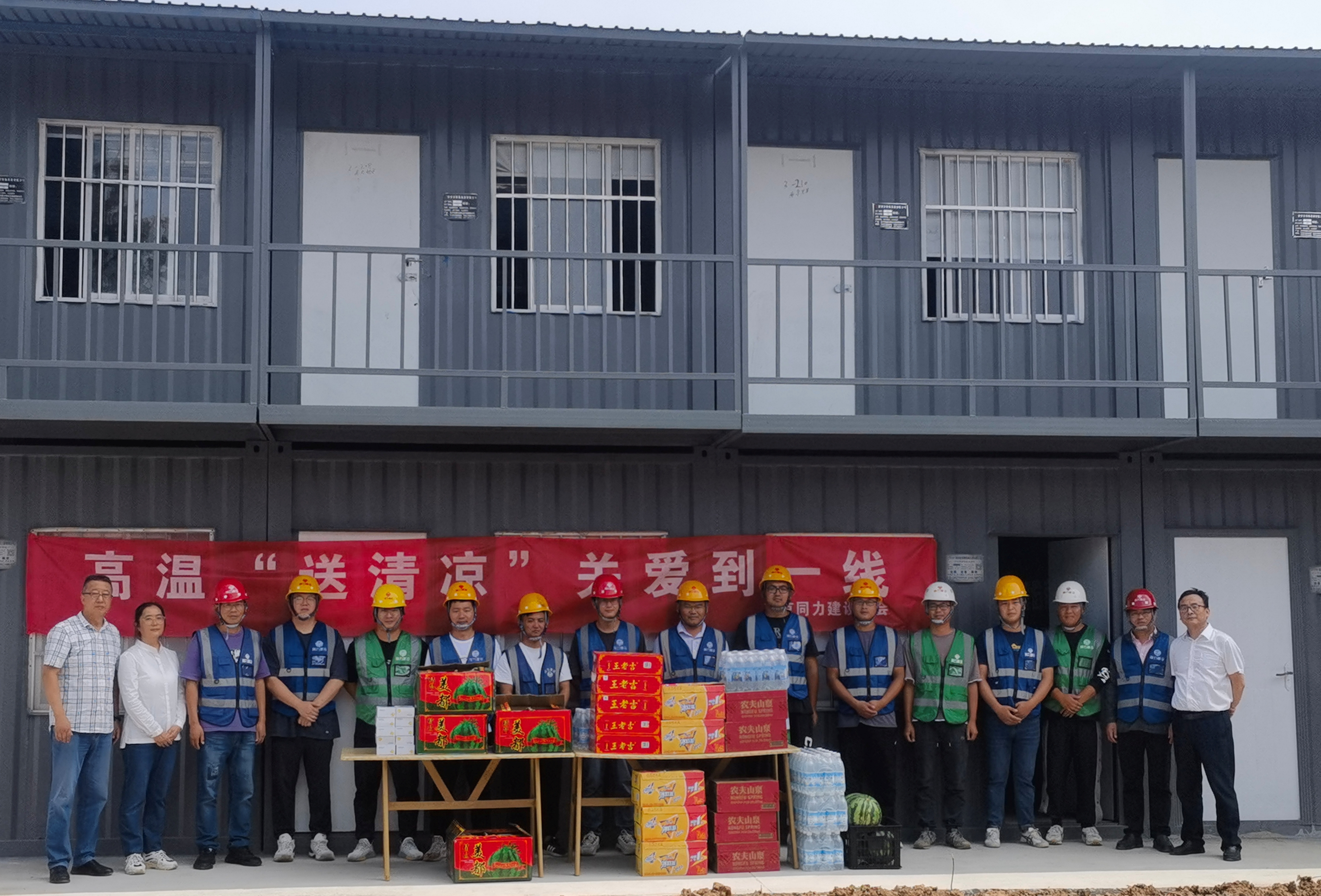烈日炎炎,心系职工的脚步匆匆,近日,雷火竞技网页版建设党总支书记兼工会主席仇伟明带队赴项目现场开展高温慰问活动,为奋战在酷暑中的一线职工送去清凉和关爱。雷火竞技网页版建设调研员徐庆平、总经理助理张颖陪同。