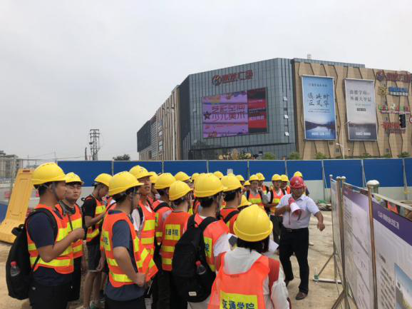 现场观摩学习主要由项目经理丁健主持,集中在东0区入口处结合红山路快速化改造全线施工情况对工程进行介绍。主要内容包含交通组织、综合管线迁改、雨水管道施工、围护桩施工、主体施工等各个方面。参观的同学结合自身学习到的理论知识与现场情况相结合,认真聆听、积极提问,现场反应热烈。很多同学都拿出手机、笔记本,将所看所听记录下来。
